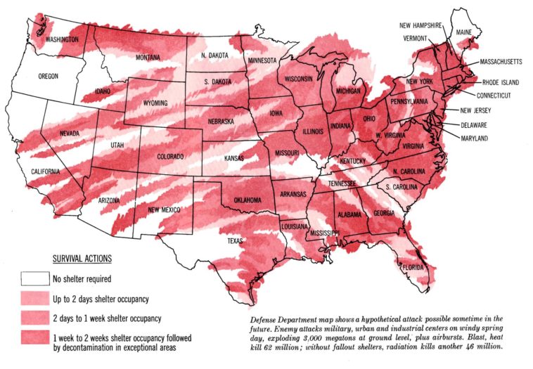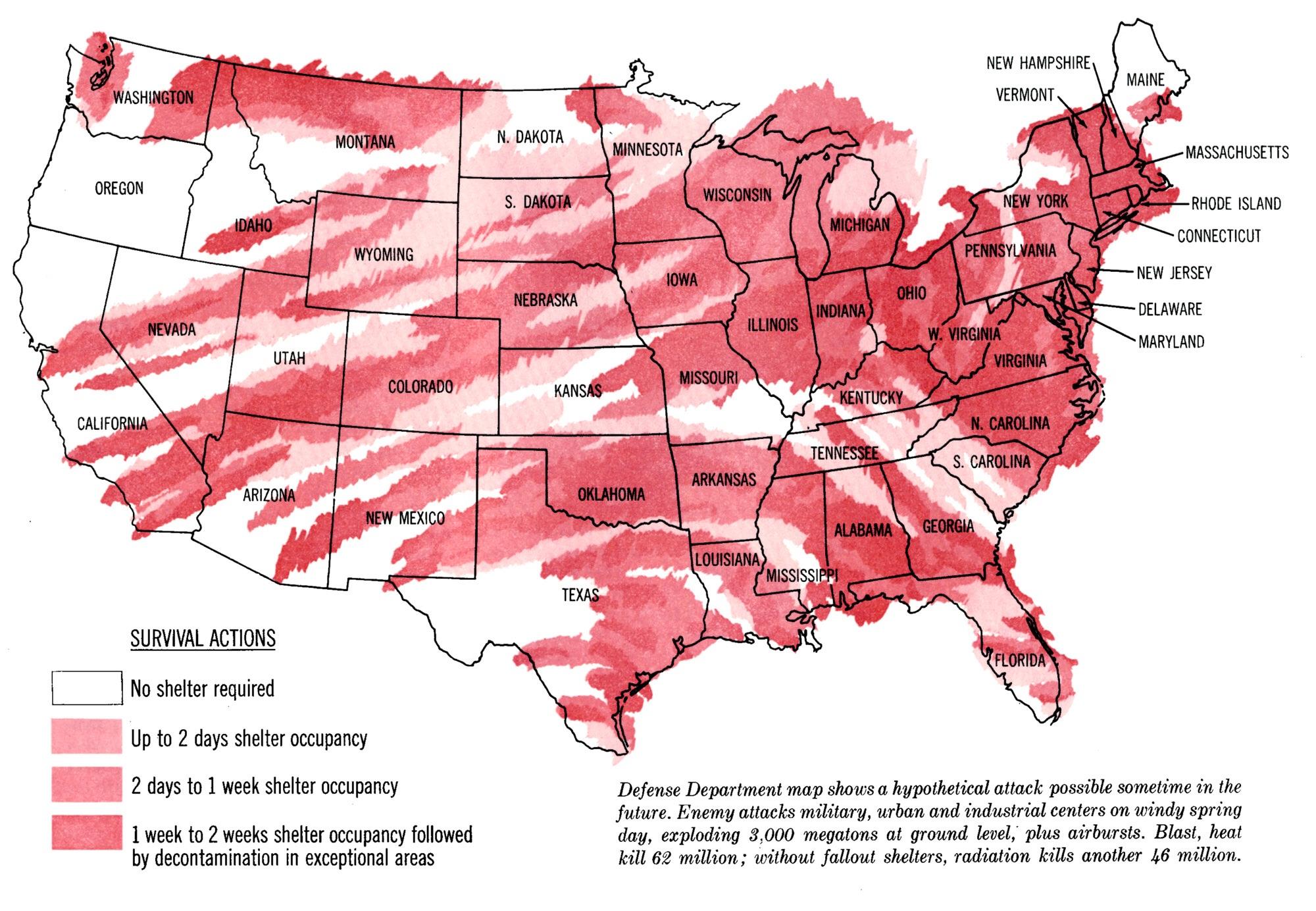 Hypothetical nuclear fallout map depicted by the department of defense.