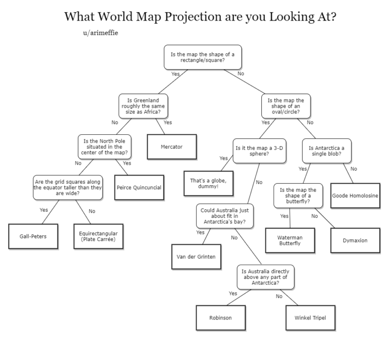 Map Info & Chart : I made a flow chart to figure out what world map projection you are looking at