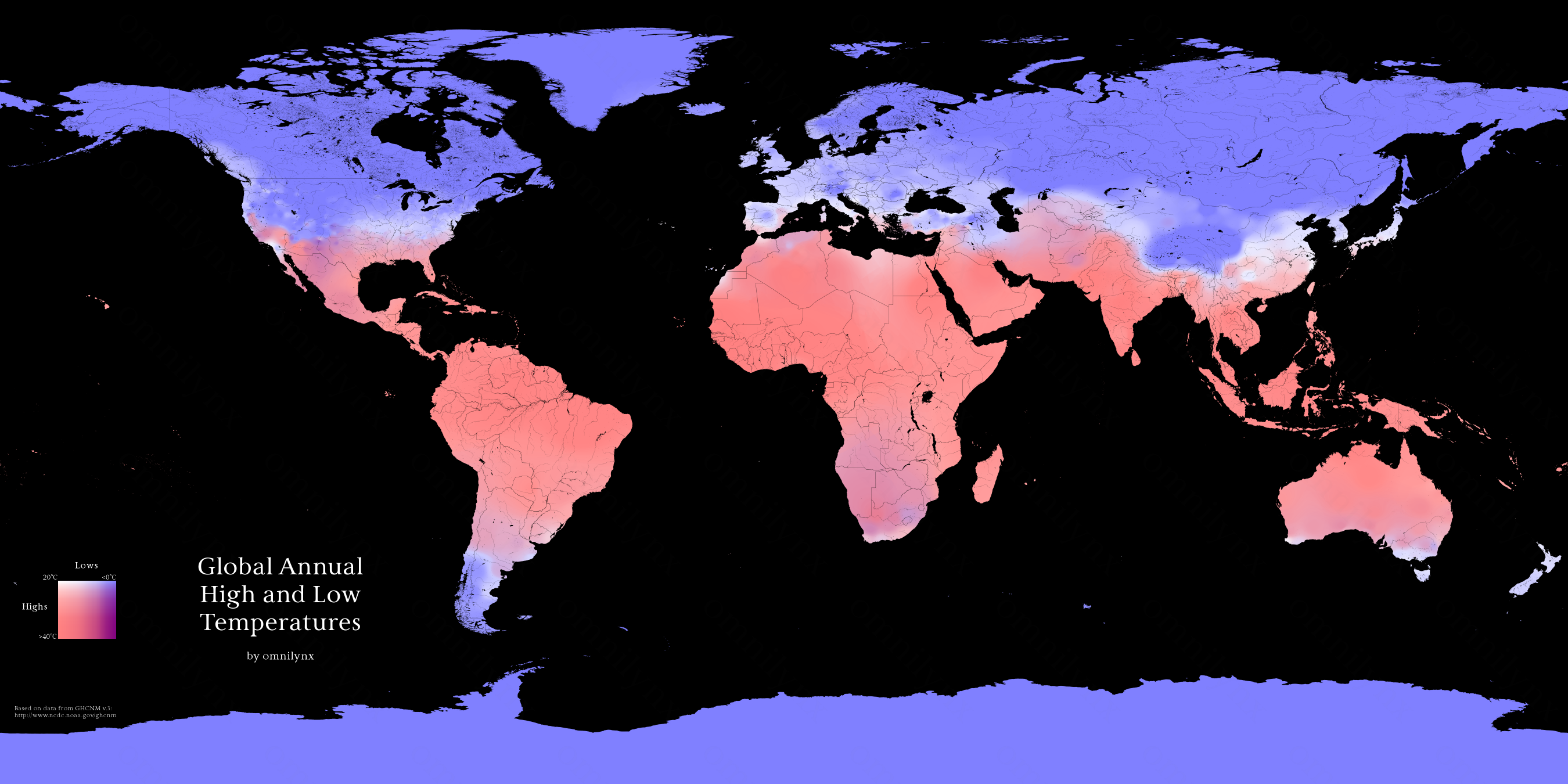 I made a map of global annual temperature extremes.