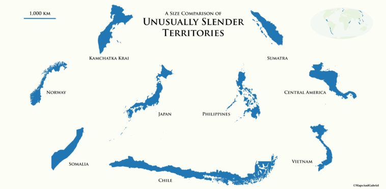 Map Info & Chart : I made A Size Comparison of Unusually Slender Territories