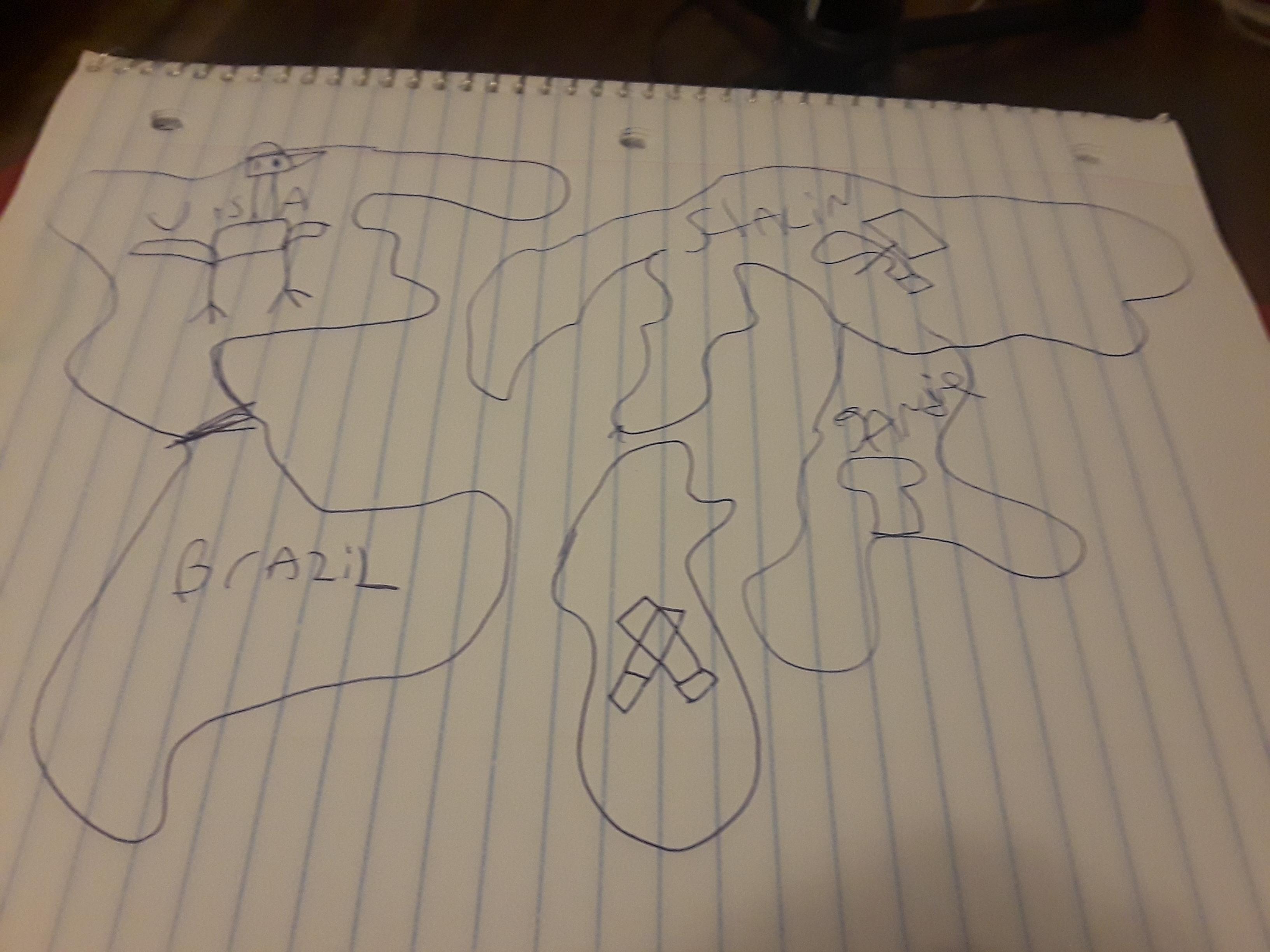 I was cleaning the actic and found my old 3rd grade doodling book. I saw this map and though id give you nightmares by posting it.