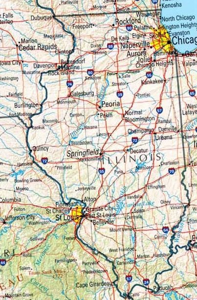 Illinois – large towns and highways