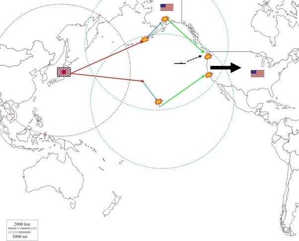 In February 1942, a plan was proposed by some radical members of the Japanese High Command during WWII to enact a series of assaults across the Pacific aimed at attacking the U.S. (more in the comments)