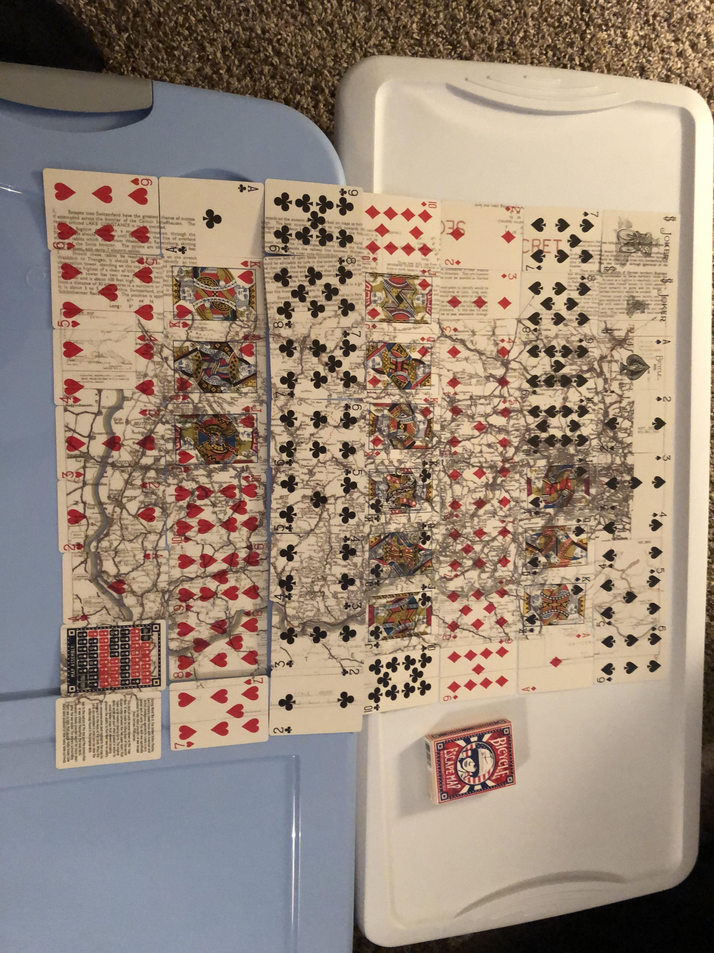 In WWII they used decks of cards to form Maps if soldiers were imprisoned and I found one of the decks this is what it looks like.