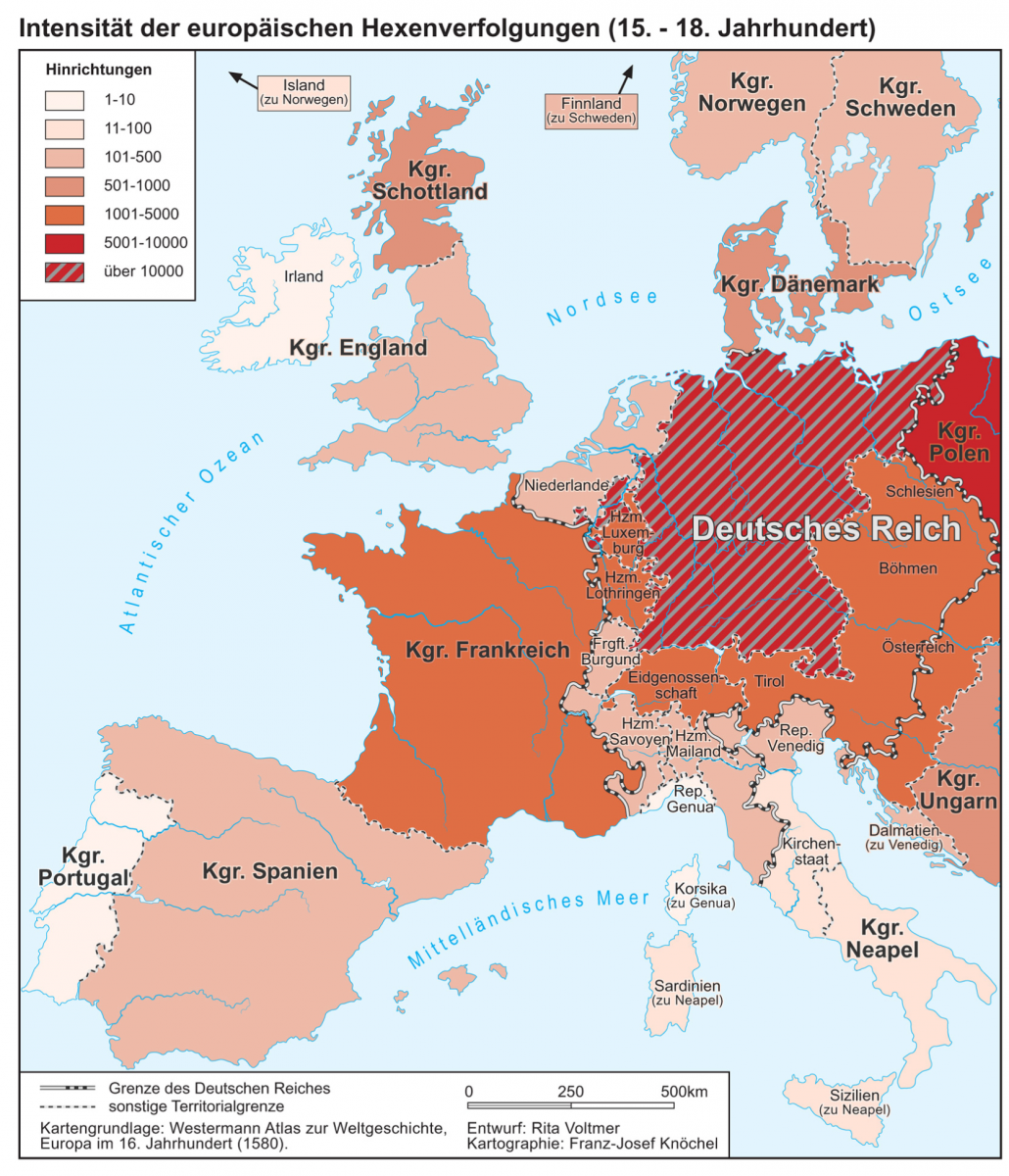 Map Info & Chart : intensity of european witch hunts (c. 15-18)