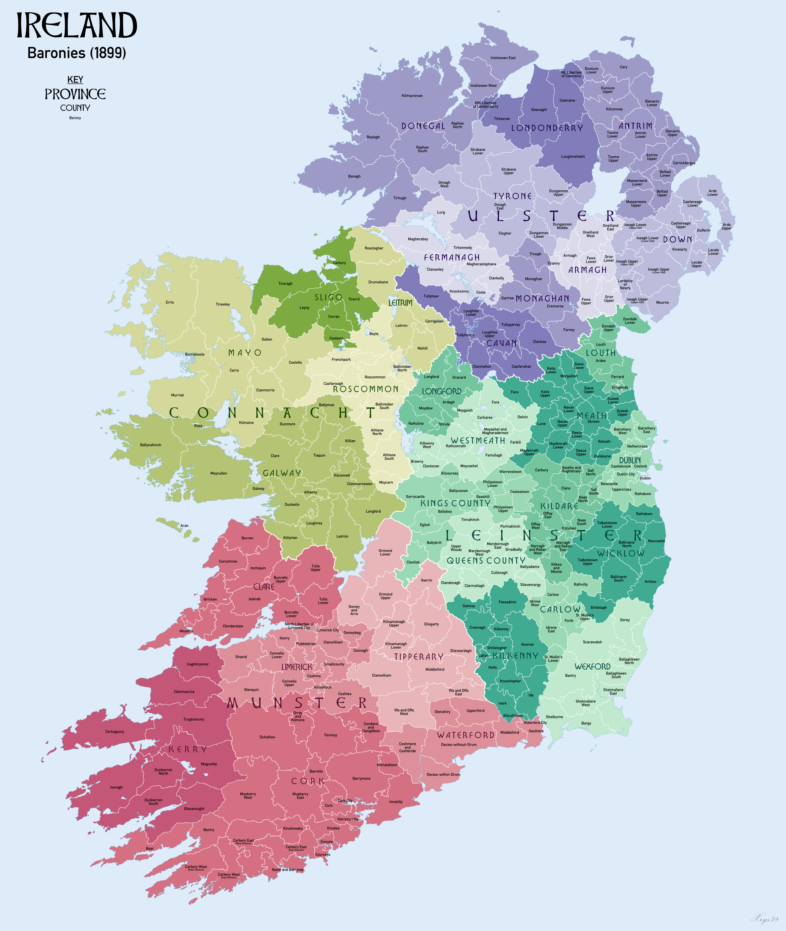 Interesting map. The historical Barony divisions in Ireland