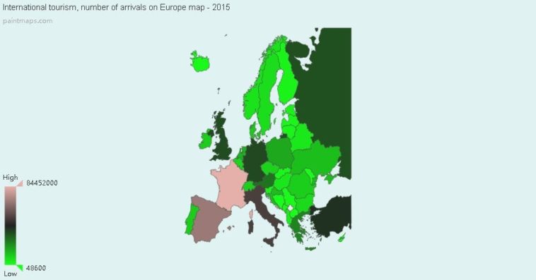 Map Info & Chart : International tourism, number of arrivals (Europe)