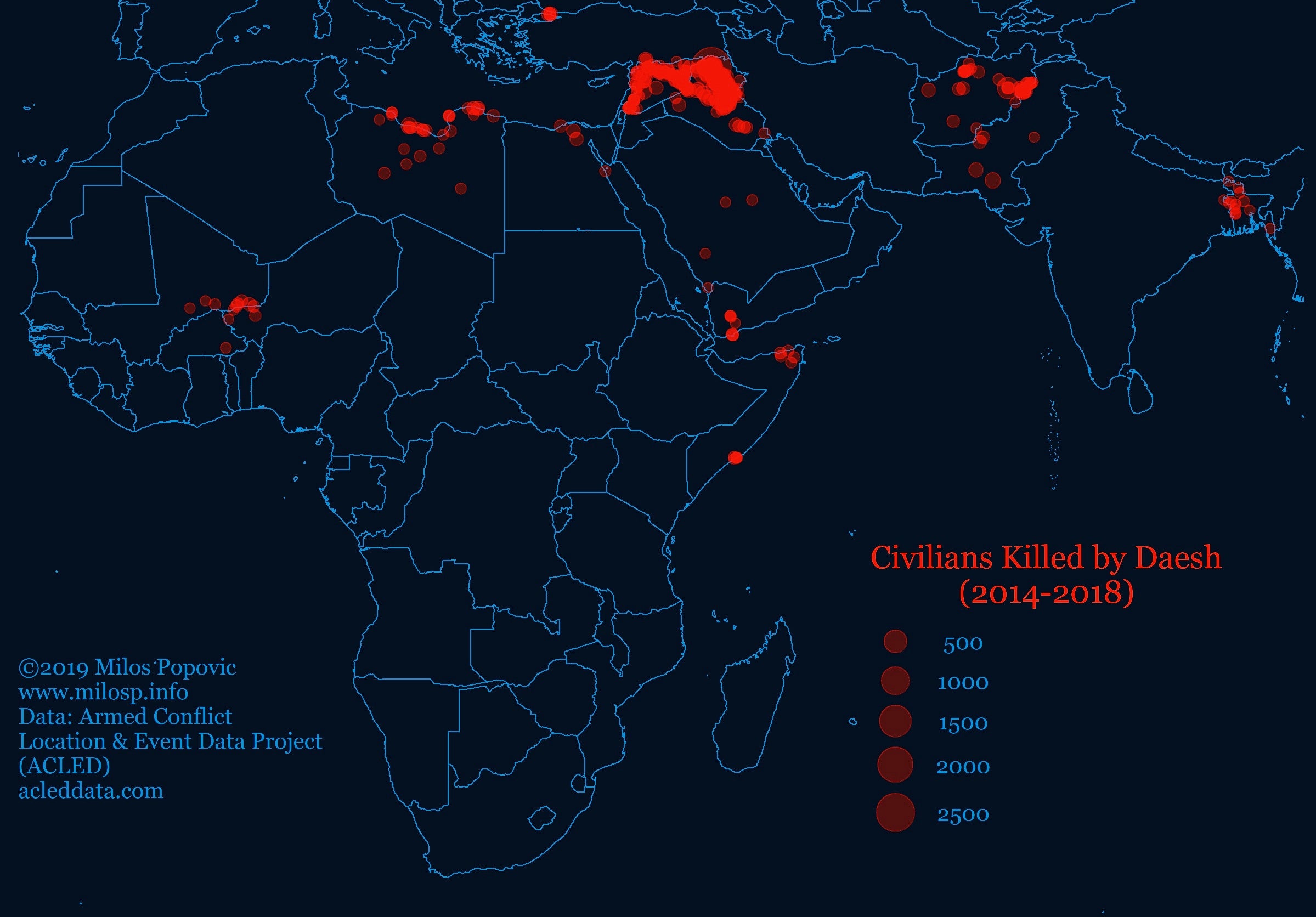 ISIS has killed 10133 civilians since 2014 (see more maps @ www.milosp.info)[OC]