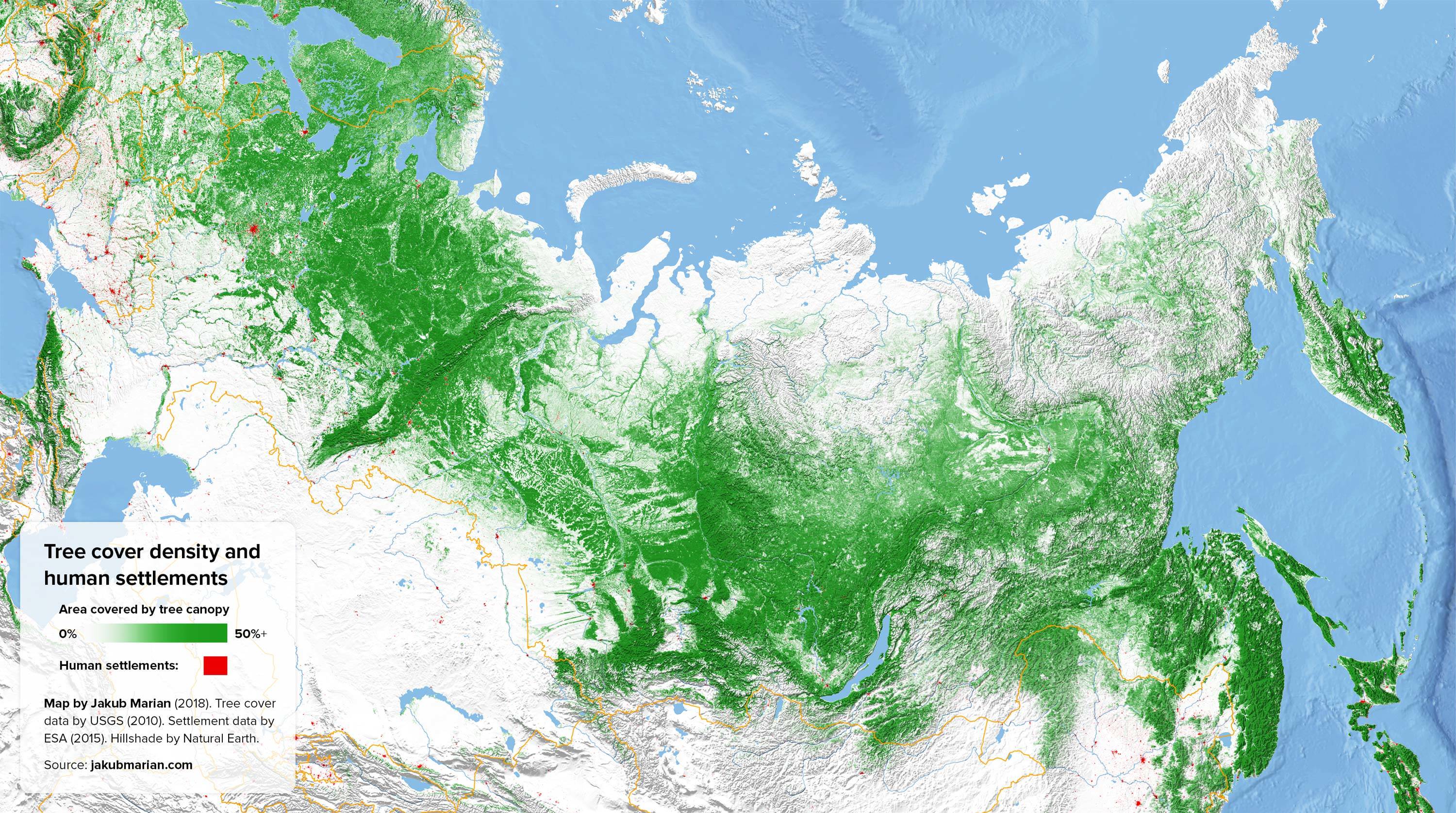 Map Info & Chart : Jakub Marian’s tree cover map of Russia and surrounding areas [3000×1675]