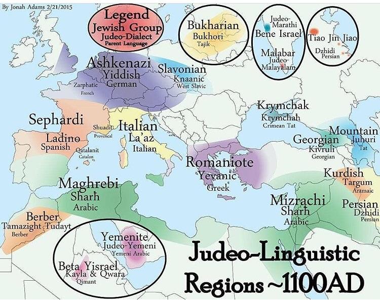 Map Info & Chart : Jewish Communities Of 1100 AD, divided by language