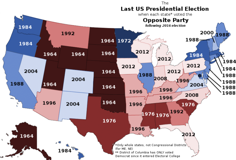 Map Info & Chart : Last Time Each State Swung “The Other Way”
