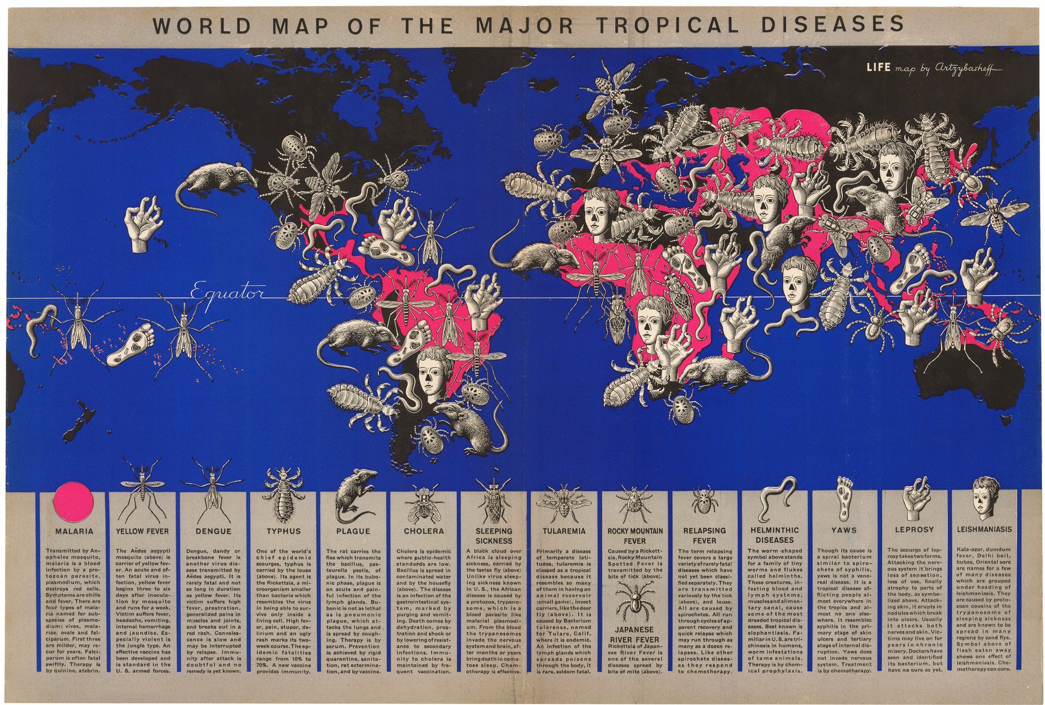 Map Info & Chart : Life Magazine Map of Major Tropical Diseases (1944)