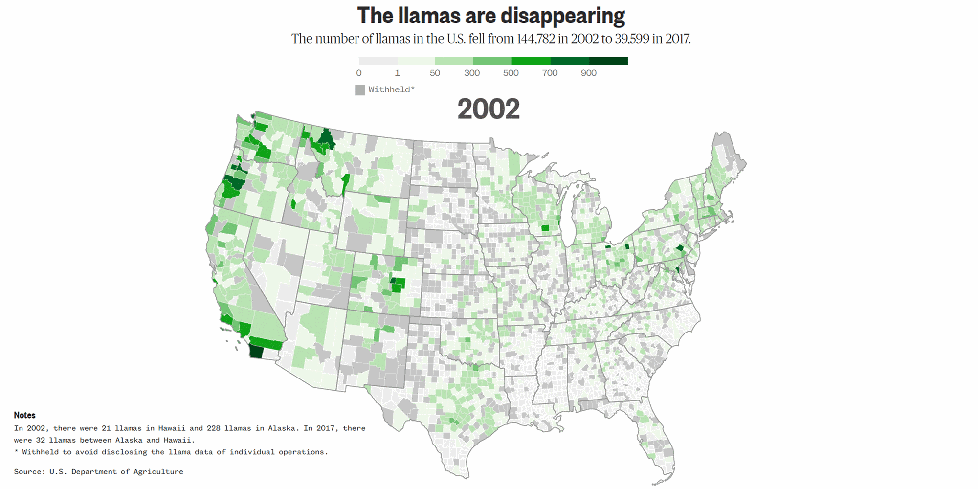 Map Info & Chart : Llama decline in the United States, 2002-2017