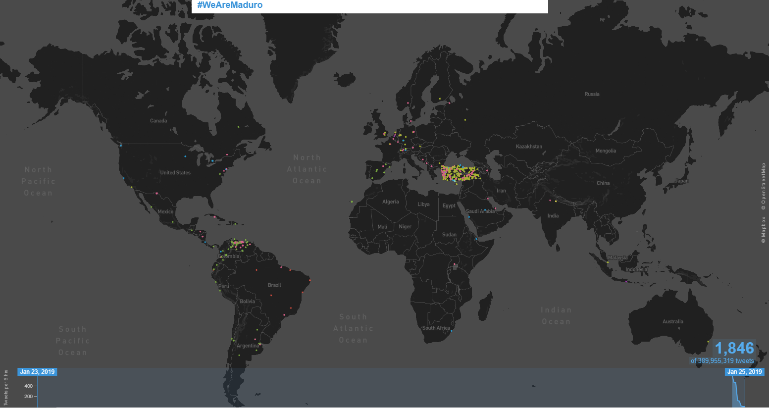 Map Info & Chart : Location of the tweets using the hashtag #WeAreMaduro