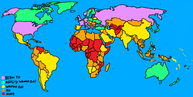 Map : making this was so much fun (places by degree to which I want to go there)