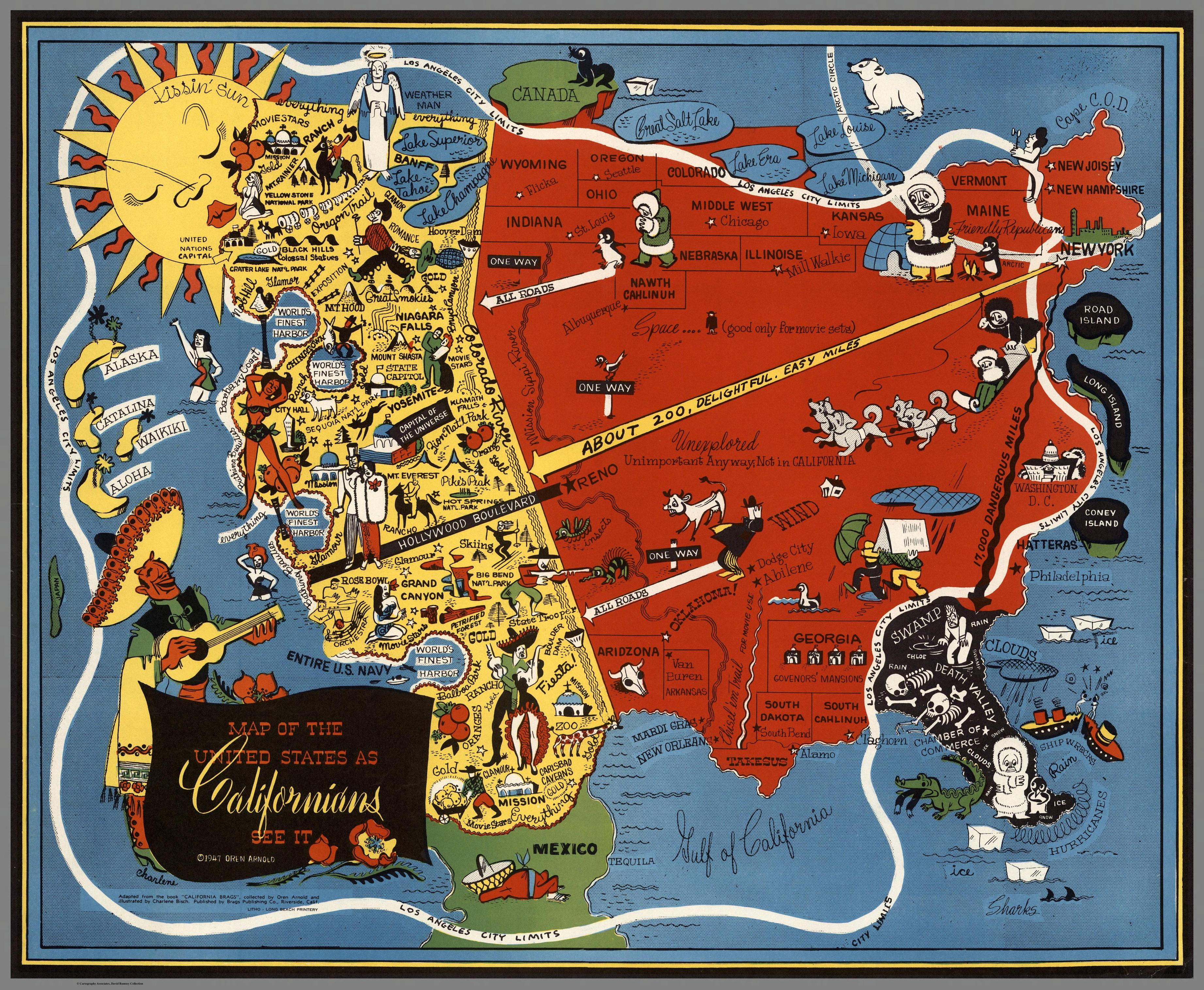 Map Info & Chart : Map of California from the humor book “California Brags” 1947