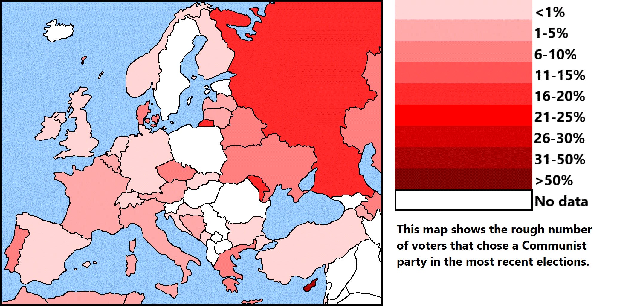Map Info & Chart : Map of Europe by the size of its Communist party
