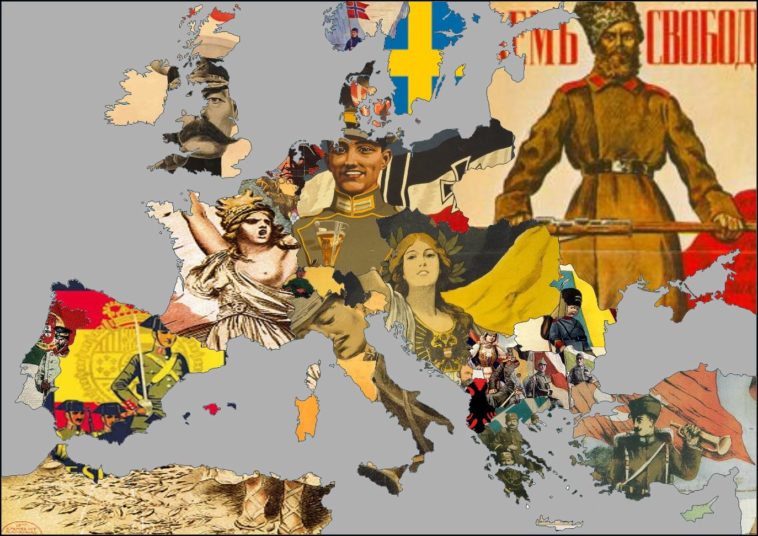 Map Info & Chart : Map of Europe during WW1 with countries propaganda posters