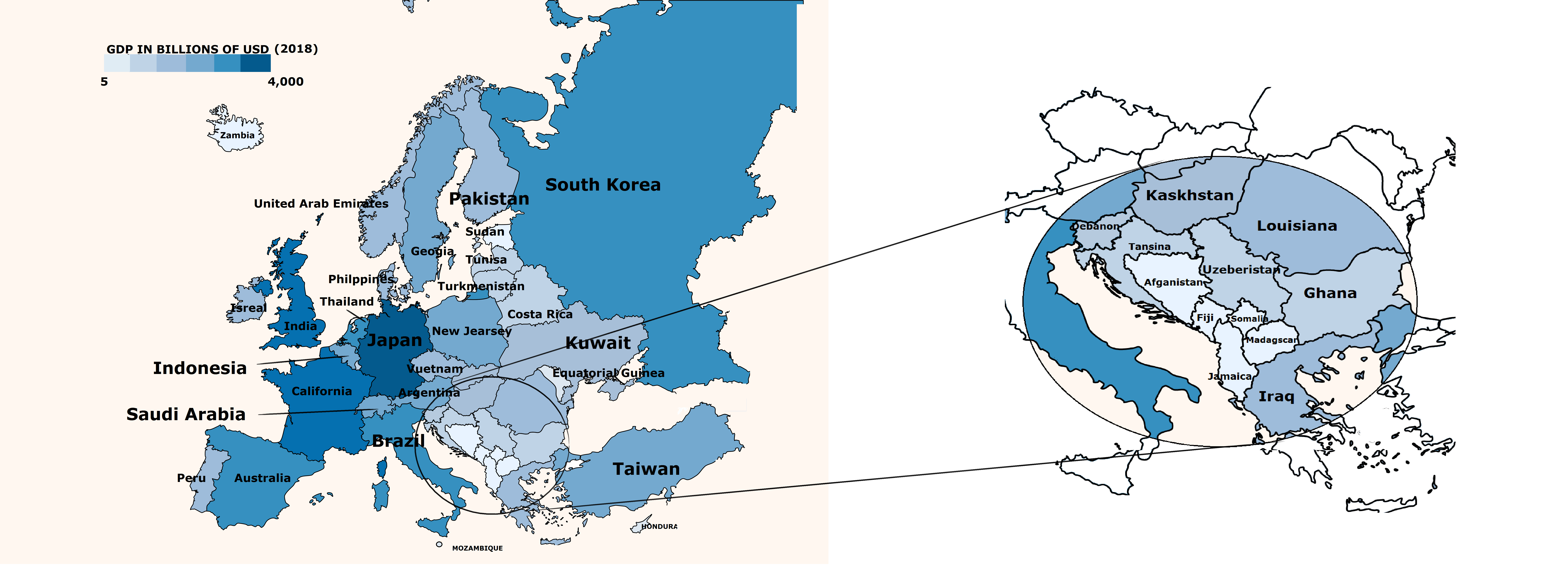 Map of Europe, With the names of similar sized economies. More info in comments.