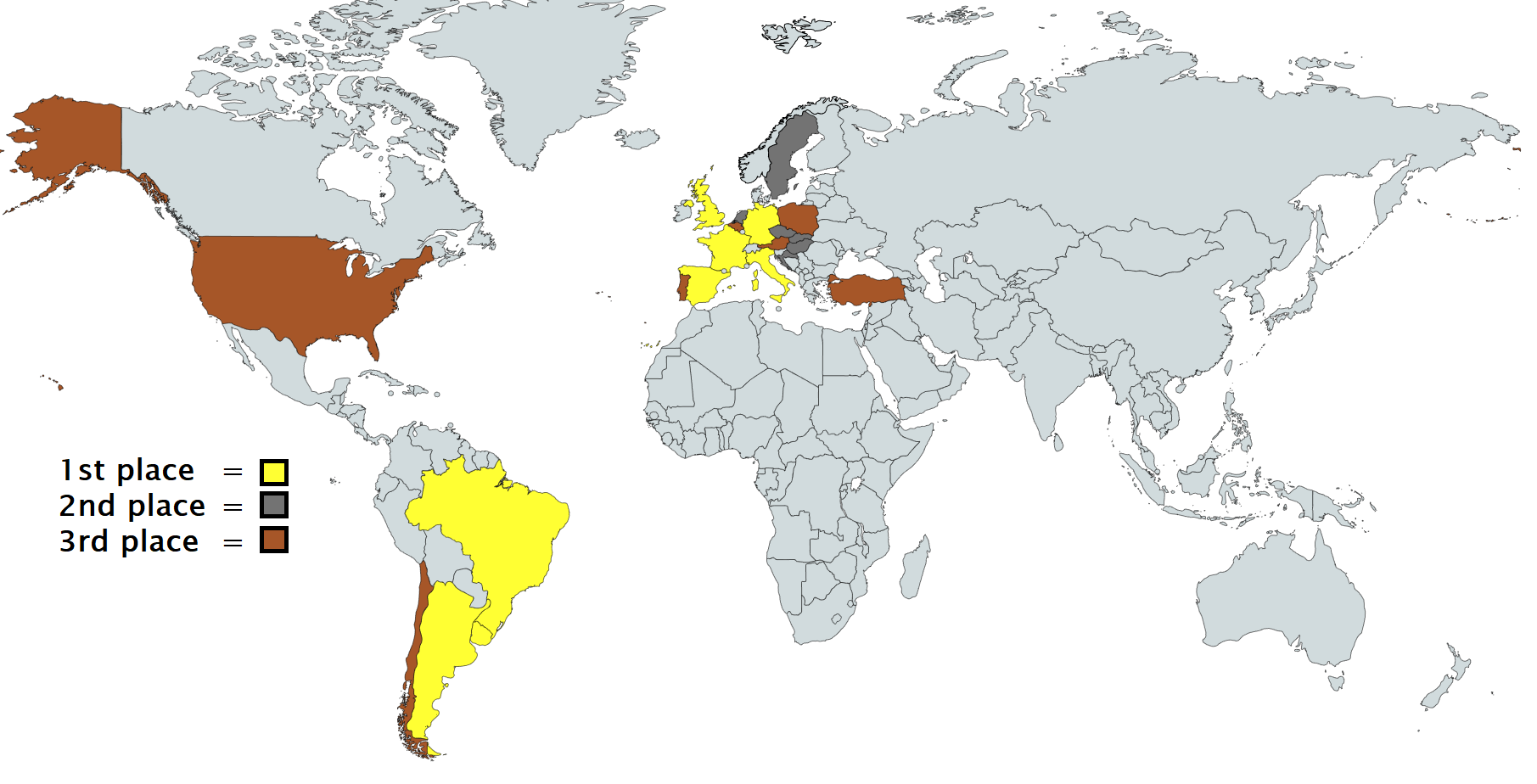Map Info & Chart : Map of every county to ever win first second or third in a world cup.