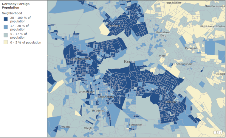 Map Info & Chart : Map of Foreign Population living in Berlin, including a legend