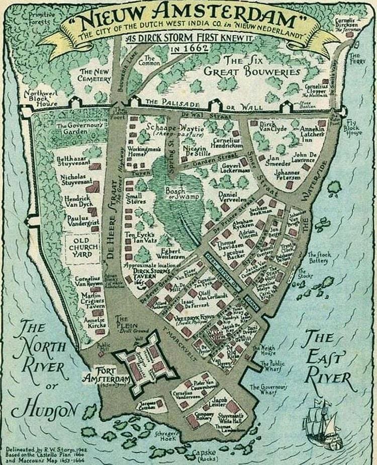 Map Info & Chart : Map of NYC in 1662 – from 1942