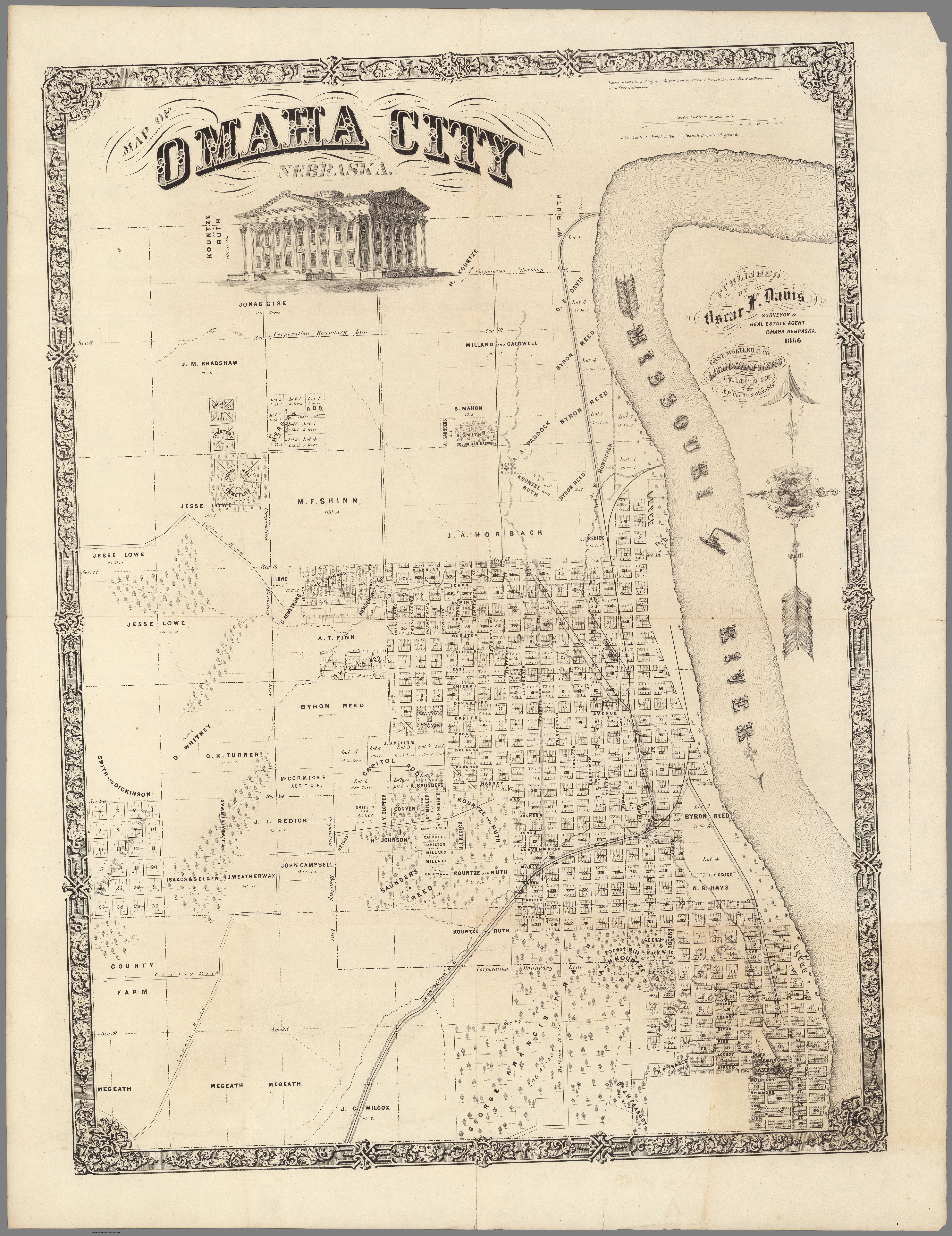 Map of Omaha City, Nebraska 1866