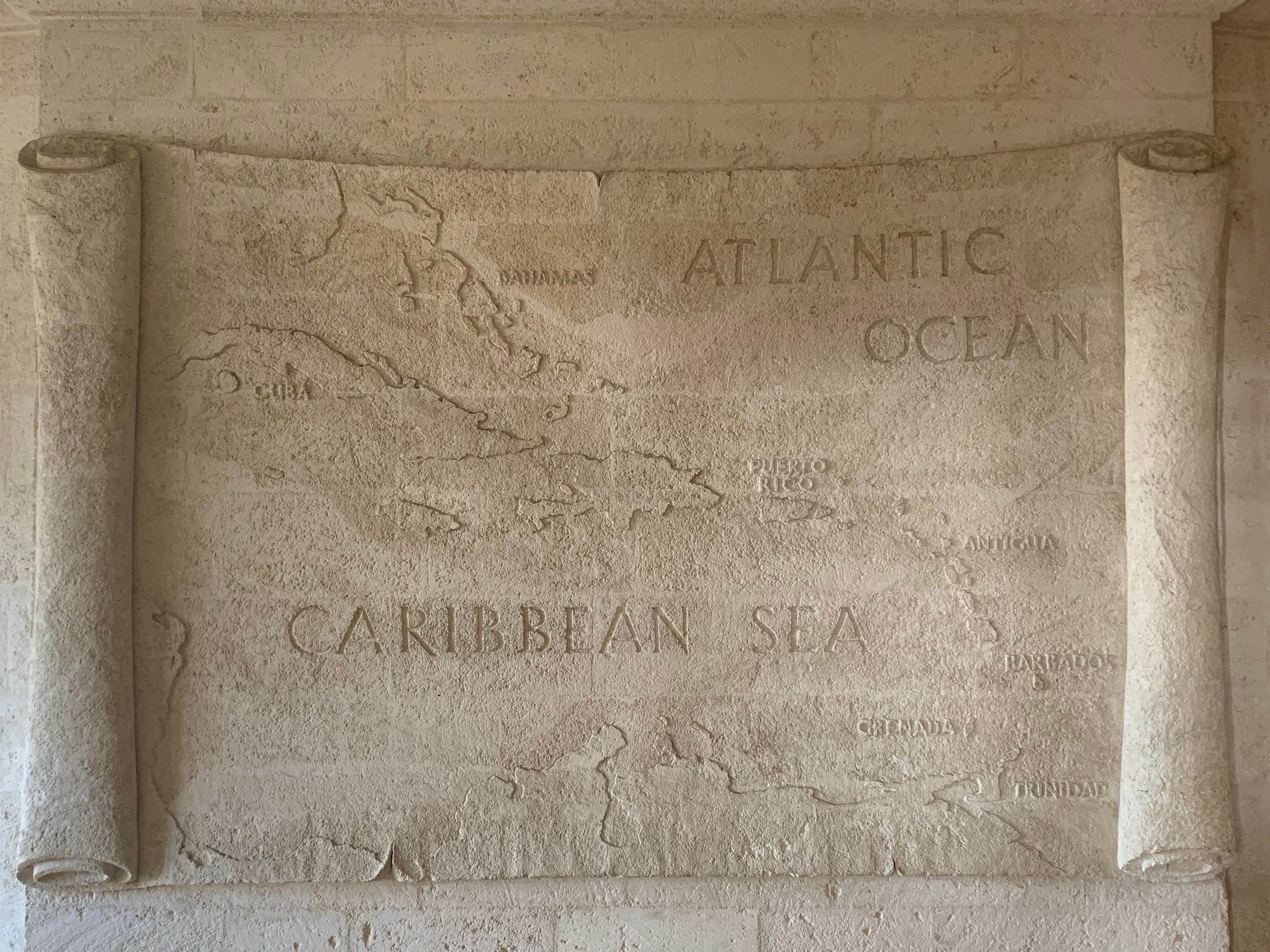 Map of the Caribbean extruded out of a wall in a hotel in Barbados