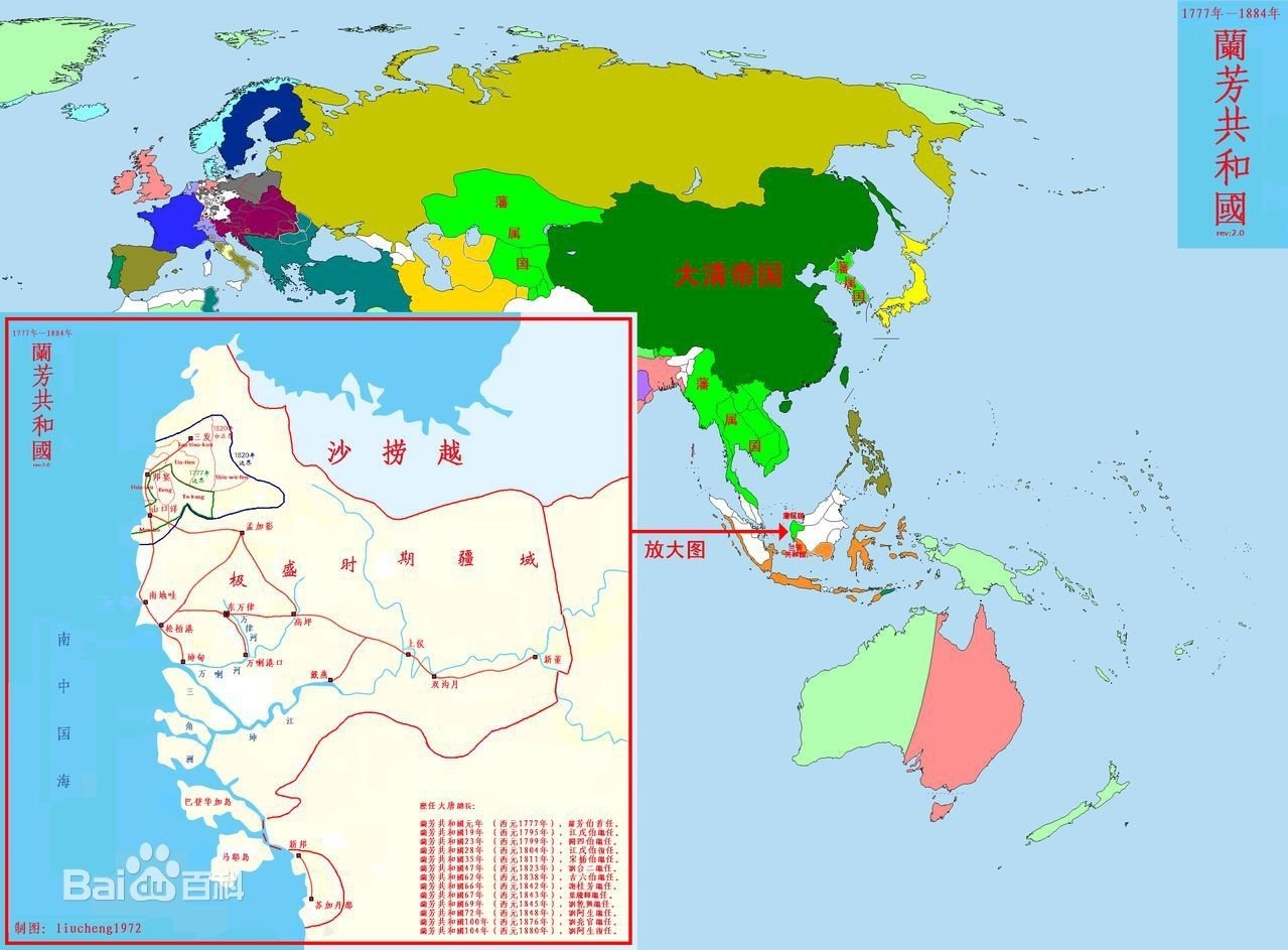 Map Info & Chart : Map of the Lanfang Republic (1777–1884), a Chinese state in the island of Borneo, Indonesia