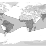 Map of the migration of modern humans out of Africa, based on mitochondrial DNA. Colored rings indicate thousand years before present.