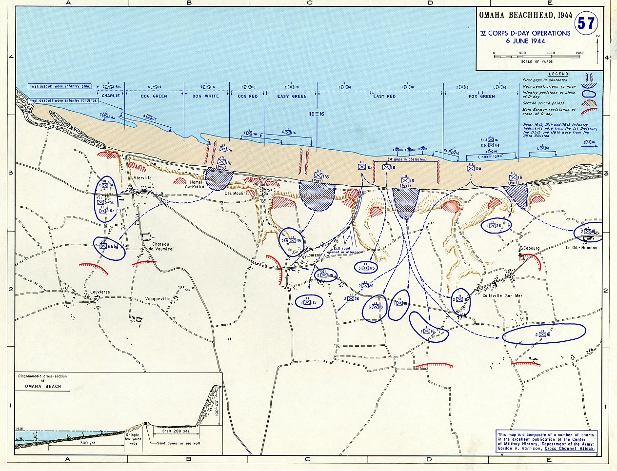 Map Info & Chart : Map of the Omaha beach landings 6th June 1944