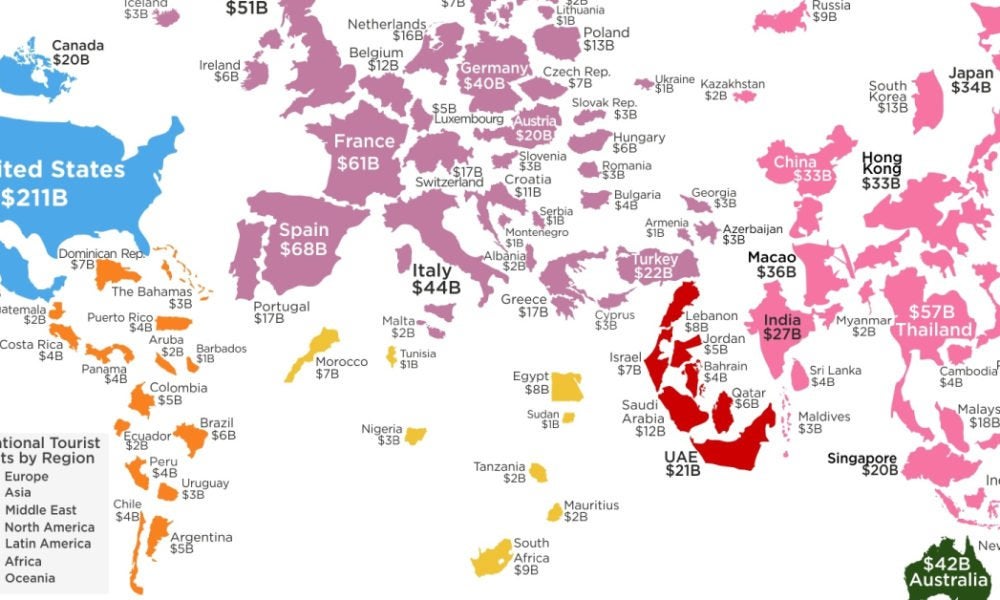 Map Info & Chart : Mapped: Top Countries by Tourist Spending