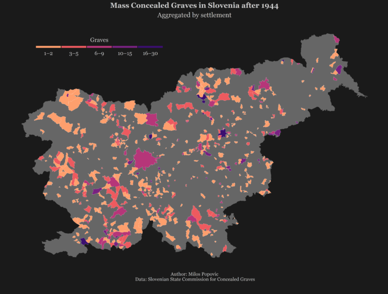 Map Info & Chart : Mass concealed graves of slain soldiers/civilians at the hands of the communist movement in Slovenia after 1944 (see more maps @ www.milosp.info)[OC]