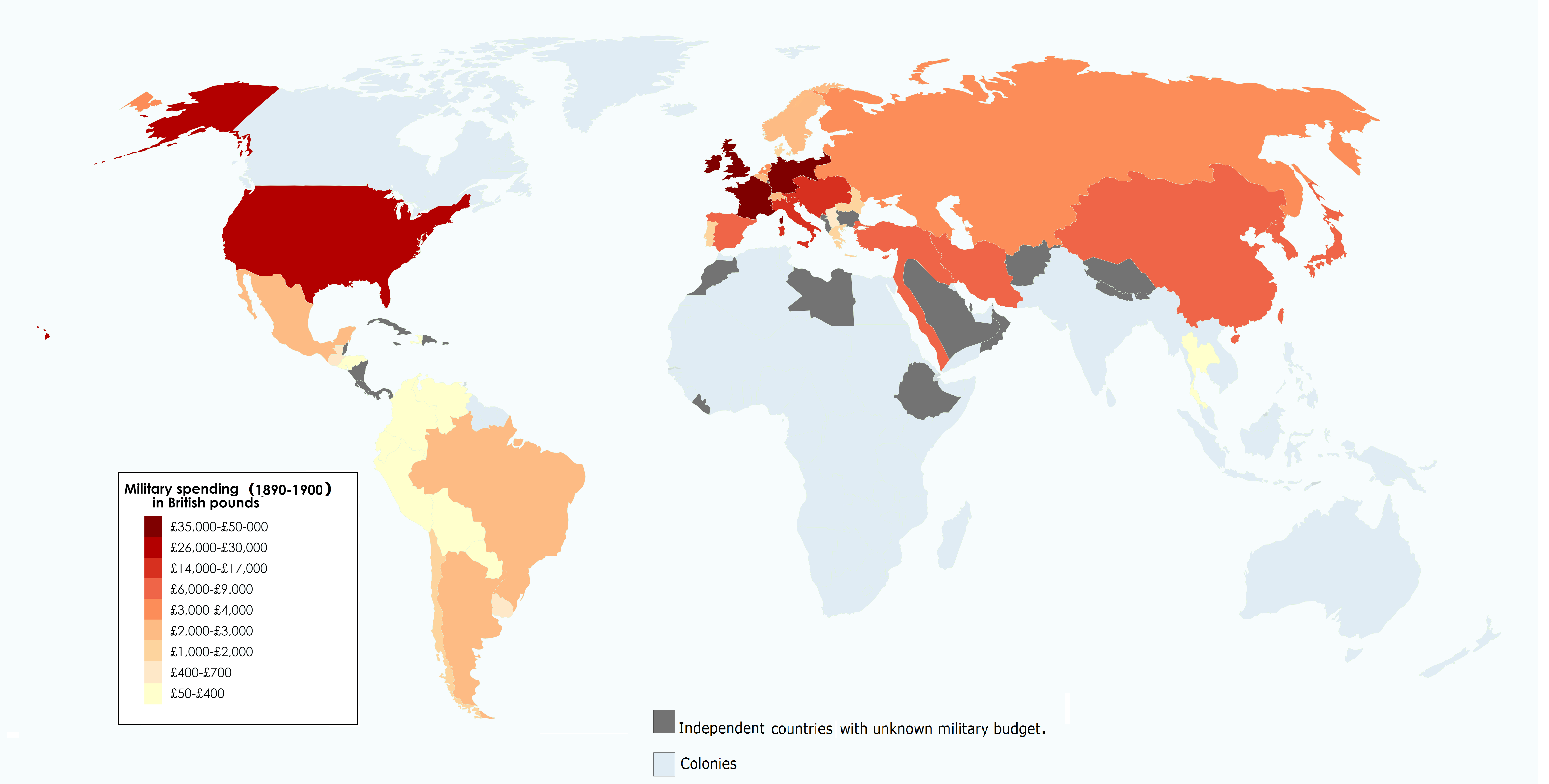 Map Info & Chart : Military spending 1890-1900 per annum in British pounds.