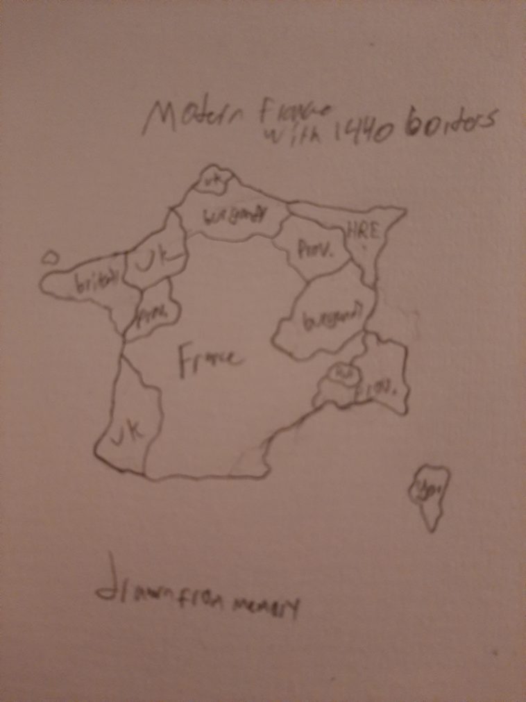 Map Info & Chart : Modern France with 1440 borders (drawn from memory)