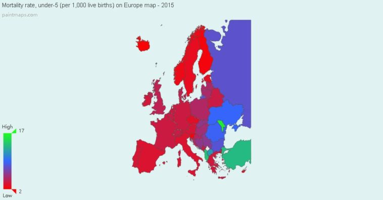 Map Info & Chart : Mortality rate, under-5 (per 1,000 live births) (Europe)