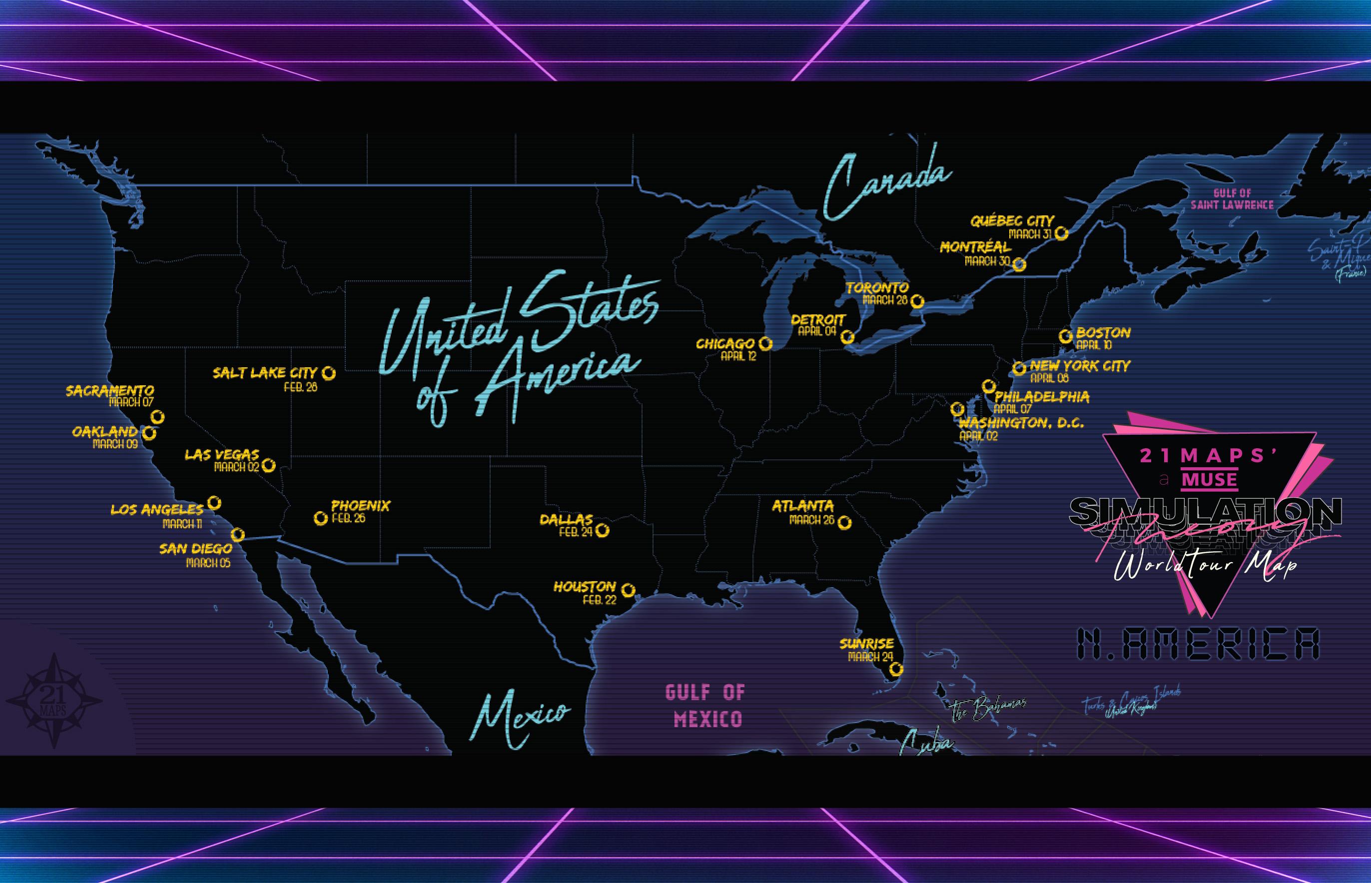 Map Info & Chart : Muse’s North American Tour in a Synthwave Style