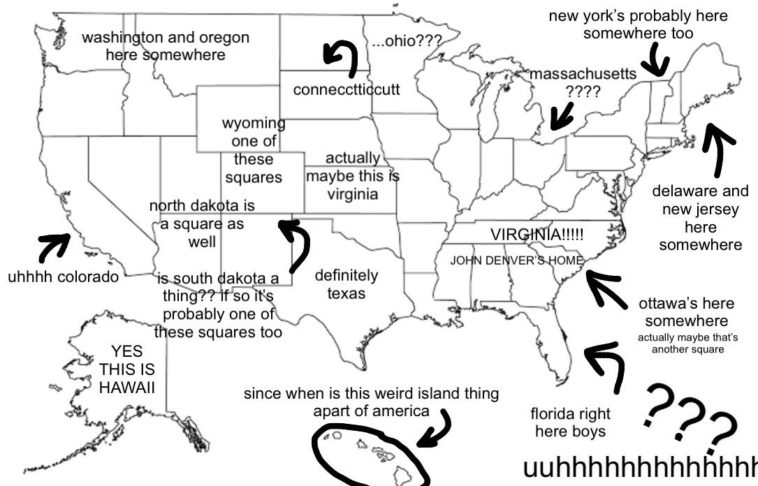 My friend and I have never been to each other’s countries, so we tried to label each other’s countries with zero reference and off the top of our heads. I had to do the USA. I think I did okay.