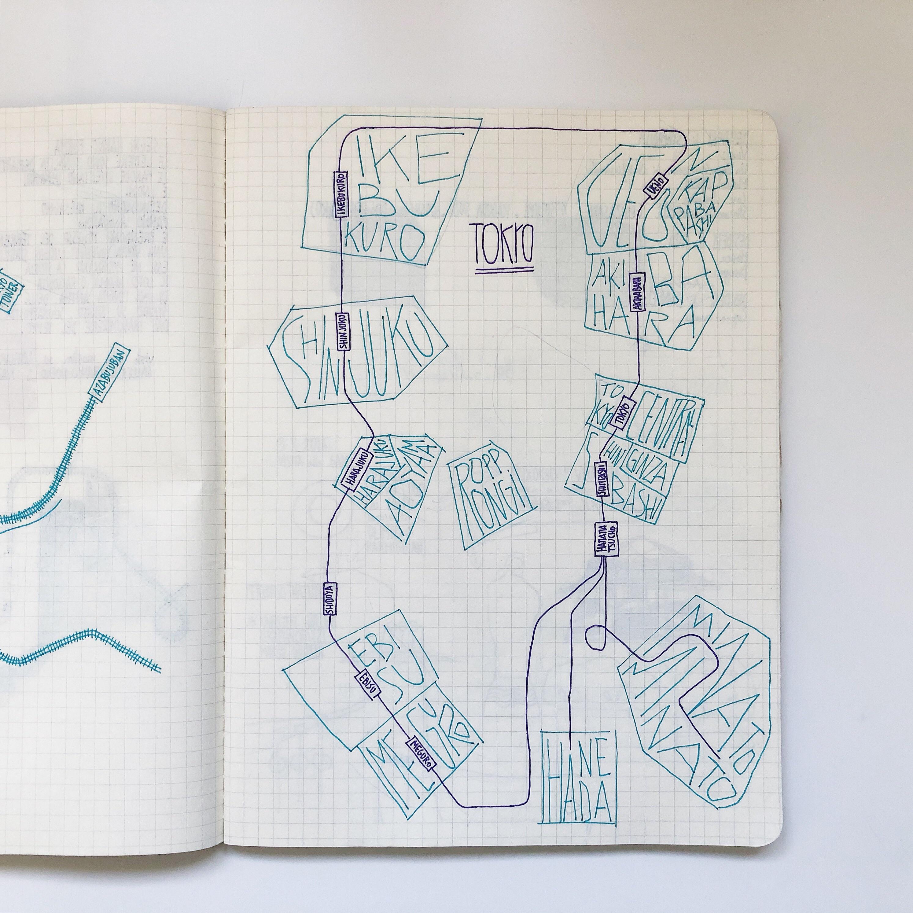 My hand-drawn map of JR Yamanote line to get acquainted with Tokyo before actually goong there. Hope you like it!
