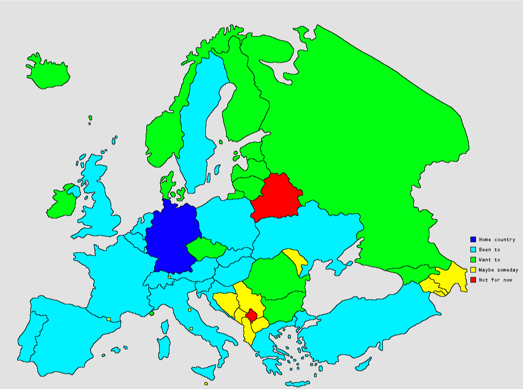Map : My travel map! Haven’t been outside of Europe sadly.