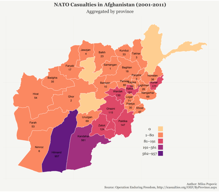 NATO casualties in Afghanistan (see more maps @ www.milosp.info)[OC]