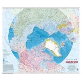 This [bilingual map](https://www.maptrove.ca/canada-maps/french/north-circumpolar-region-wall-map-bilingual-atlas-of-canada.html) shows the geography of the northern circumpolar region, north of approximately 55 degrees, at a scale of 1:9 000 000. The [map](https://www.maptrove.ca/) uses the azimuthal equidistant projection. It includes all international boundaries, as well as the Canadian provincial and territorial boundaries and Canada’s 200 nautical mile offshore exclusive economic zone. National [capital cities](https://www.maptrove.ca/canada-maps/provinces-regions/carte-du-quebec-en-francais.html) are shown, as are other cities, towns, villages and hamlets. Some seasonally populated places are also included. The map displays a number of significant northern features, including the median sea ice extent for September 1981 to 2010, the tree line, undersea relief, land relief, the Magnetic North Pole, glaciers, ice fields and coastal ice shelves. Many of the physiographic and hydrographic features are labelled.