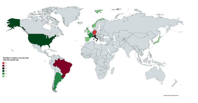 Map Info & Chart : Number of times each country has won the world cup