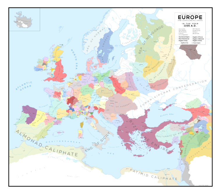 Map : [OC] Europe and Surrounding Areas in 1155 A.D. (Updated)