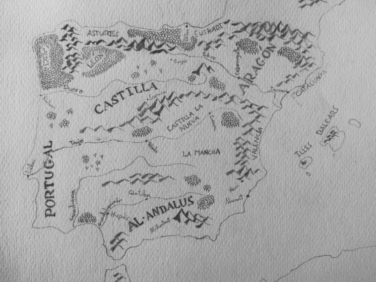 [OC] I hand-drawed a map of Spain and Portugal with a LOTR theme
