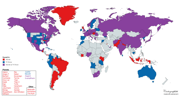 Map Info & Chart : [OC] Map of Places Seen in the Marvel Cinematic Universe