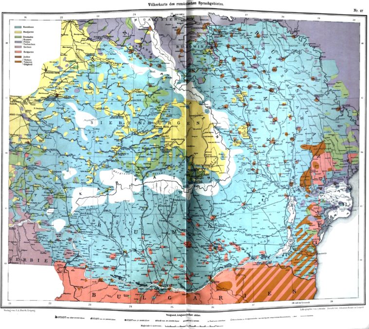 Old map of the ethnic makeup of Romania and surrounding areas