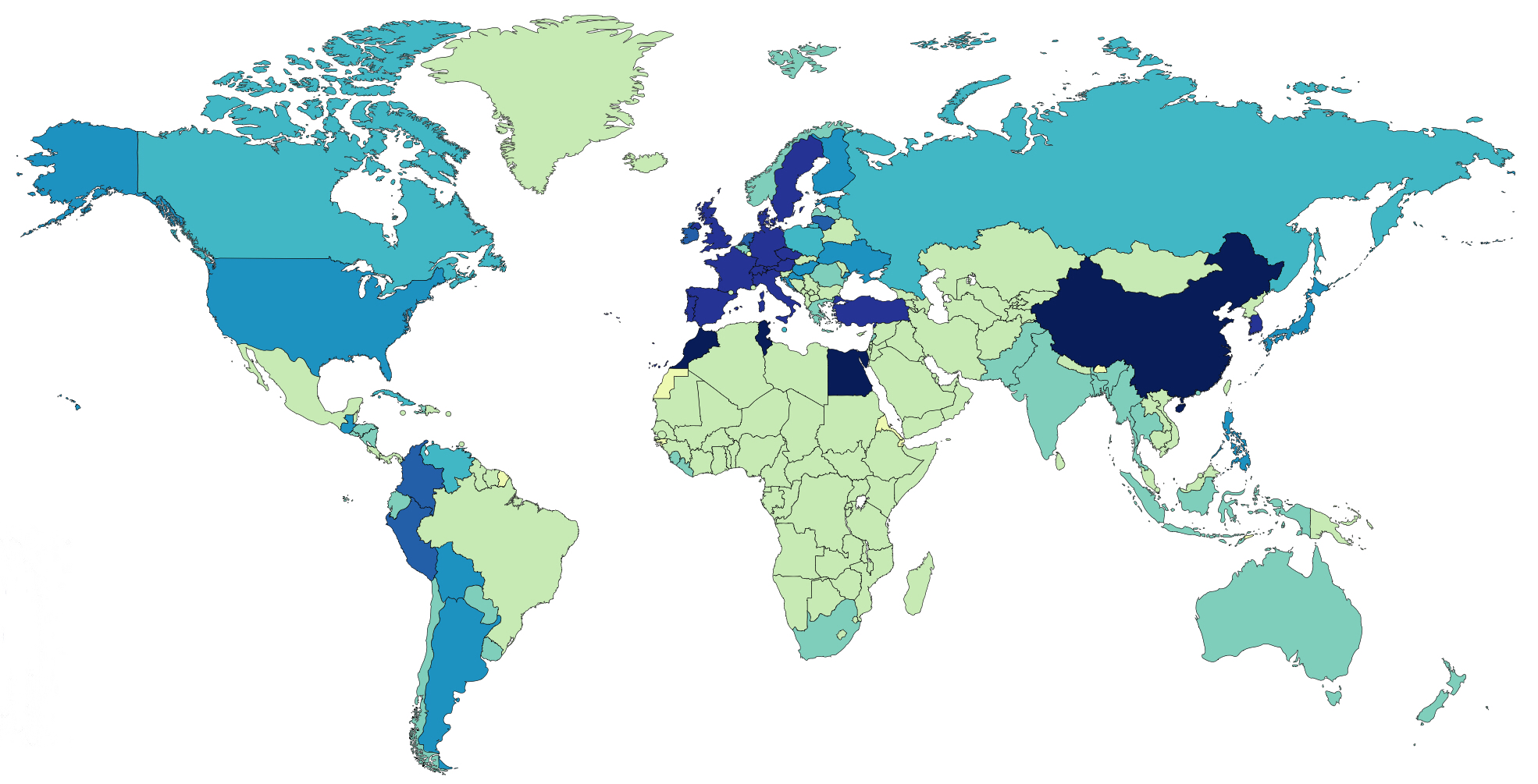 Map Info & Chart : Oldest university in each country. Key is in comments.