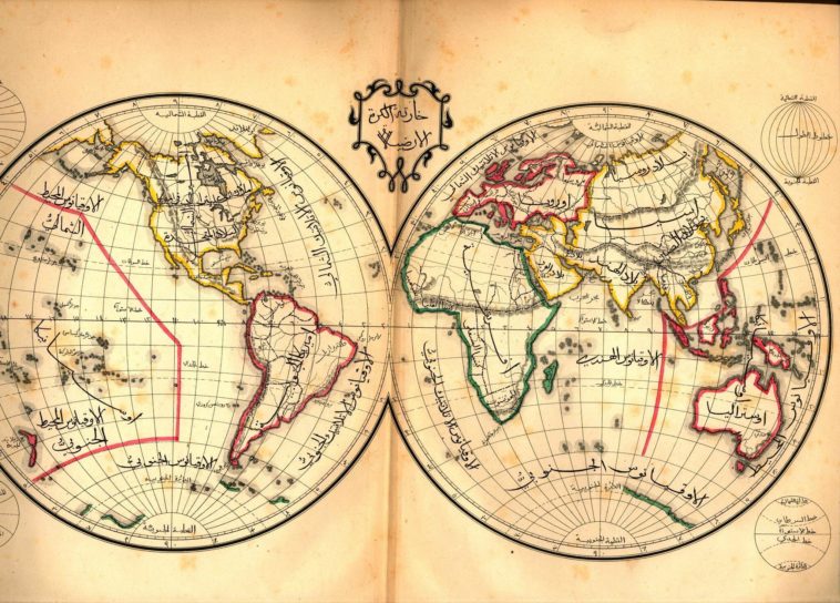 Map : One of the oldest Arabic world atlases, published in Malta in 1835.