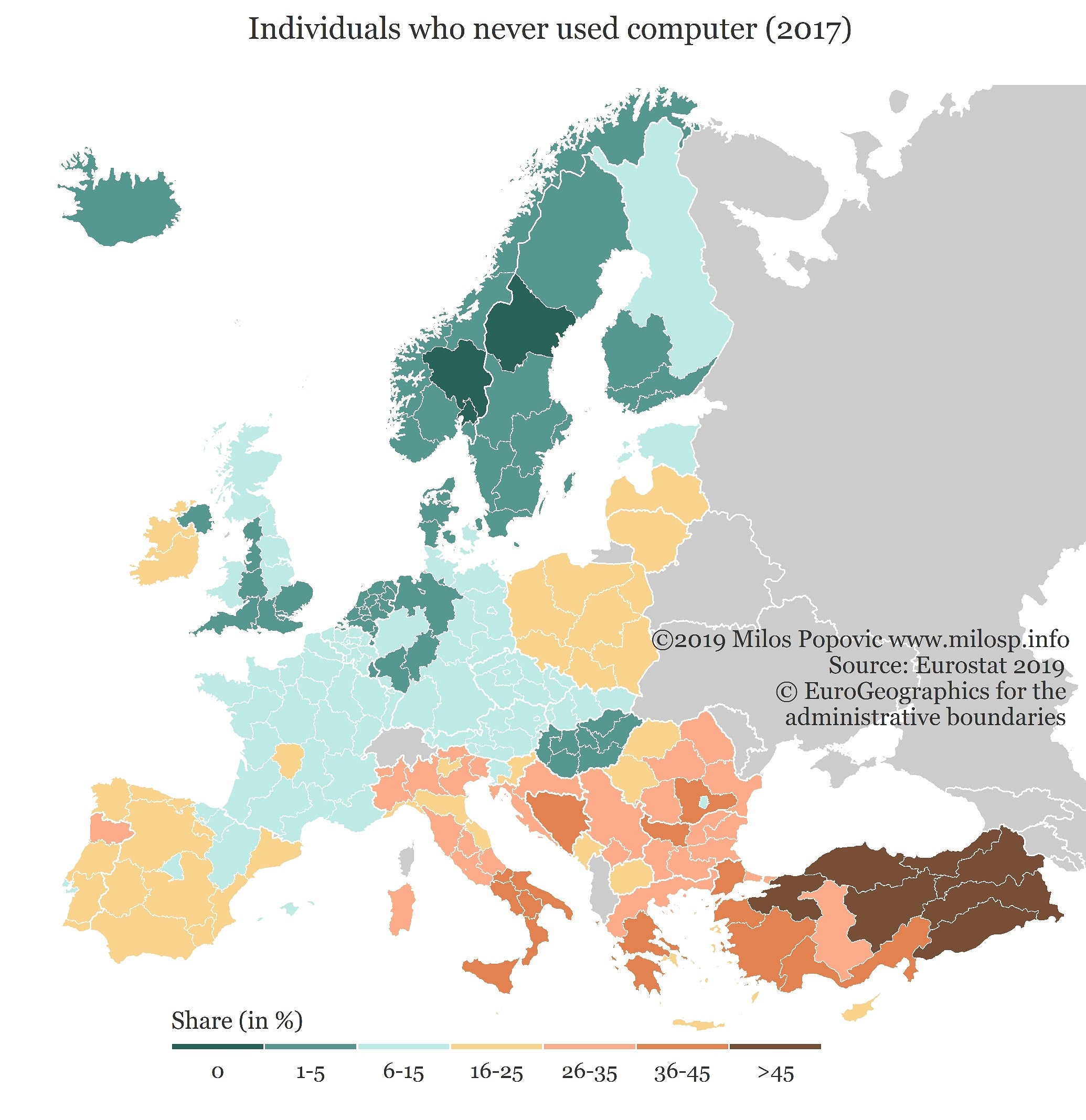 Map Info & Chart : People who never used computer (see more maps @ www.milosp.info)[OC]